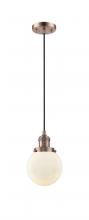 Beacon - 1 Light - 6 inch - Antique Brass - Matte White Shade - Cord hung - Mini Pendant