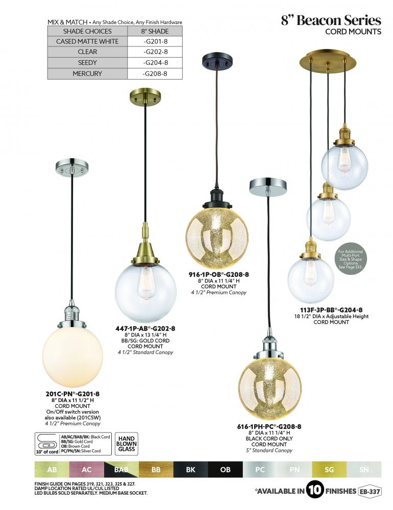 Innovations Lighting 201CSW-AB-G201-8-LED - Beacon - 1 Light - 8 inch - Antique Brass - Cord hung - Mini Pendant