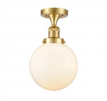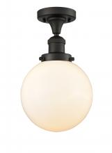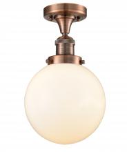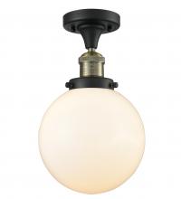 Beacon - 1 Light - 8 inch - Antique Brass - Matte White Shade - Semi-Flush Mount