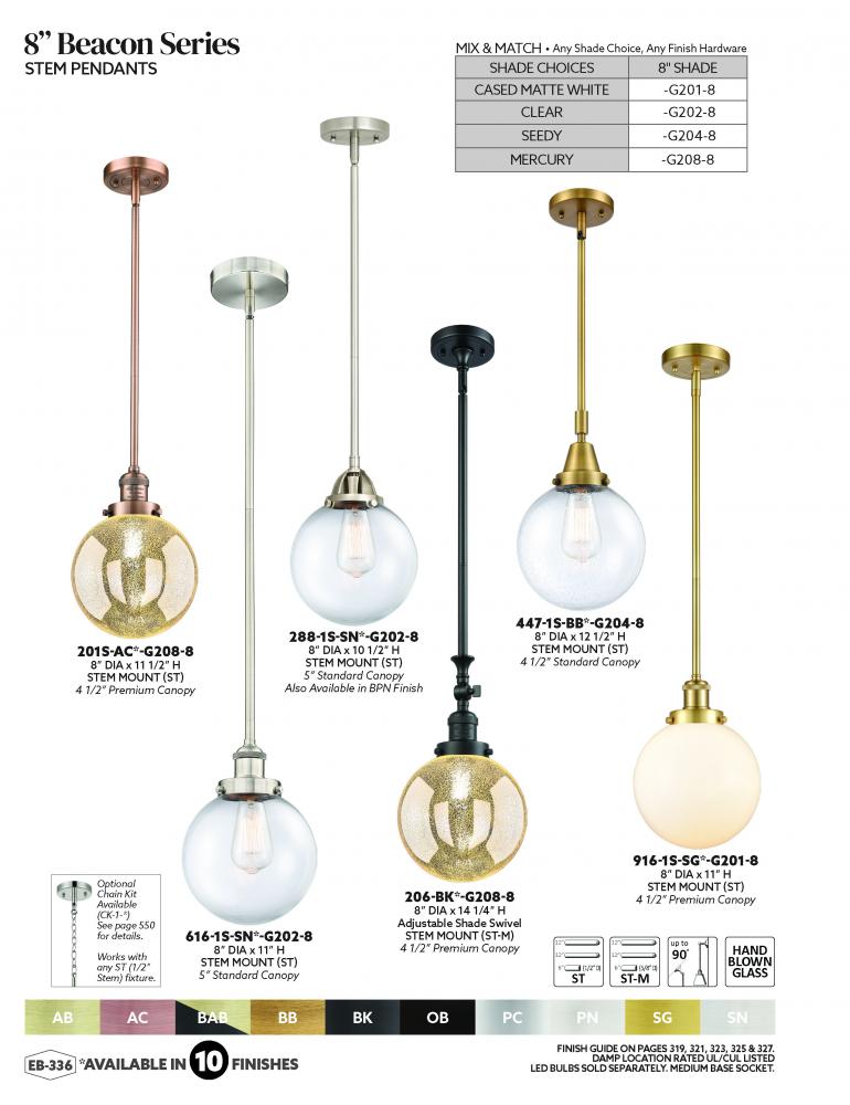 Innovations Lighting 201S-AB-G201-8 - Beacon - 1 Light - 8 inch - Antique Brass - Stem Hung - Mini Pendant
