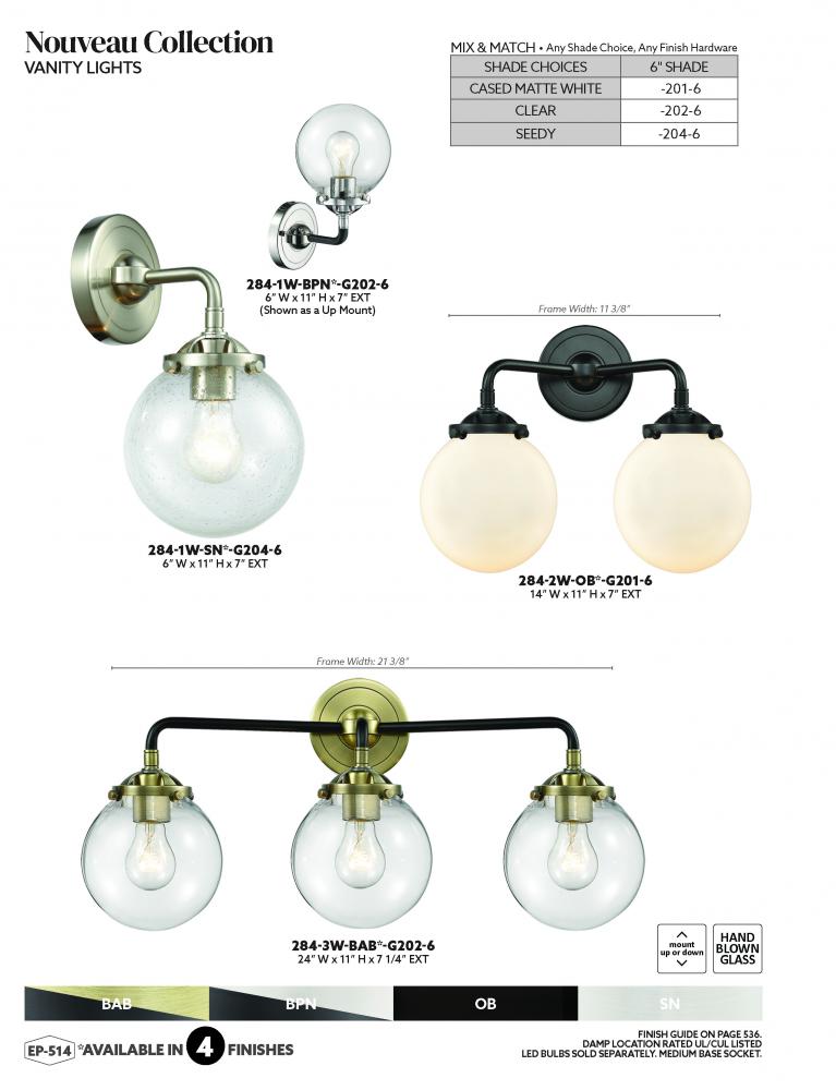 It's all in the details of the Nouveau line. A detailed base with sleek metal arm leads you to an absolutely gorgeous glass bulb that adds an unparalleled flair to any room you place these fixtures.