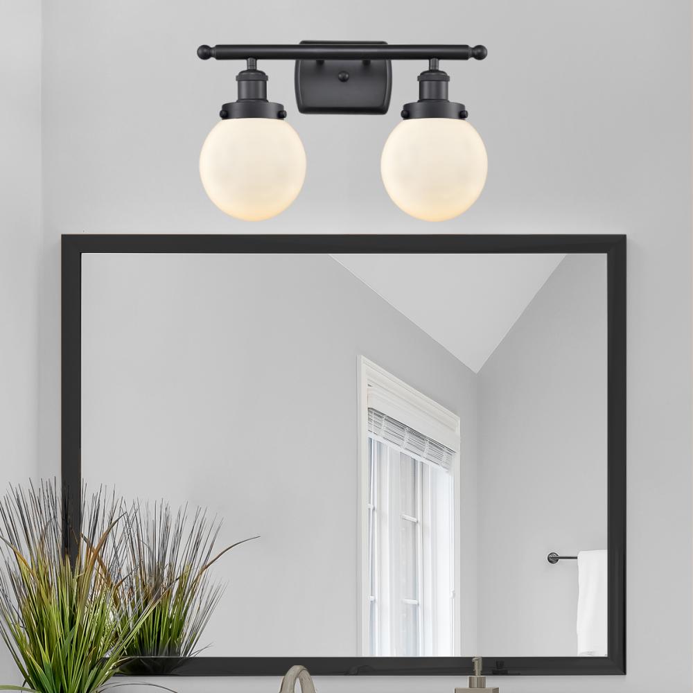 Beacon - 2 Light - 16 inch - Matte Black - Matte White Shade - Bath Vanity Light