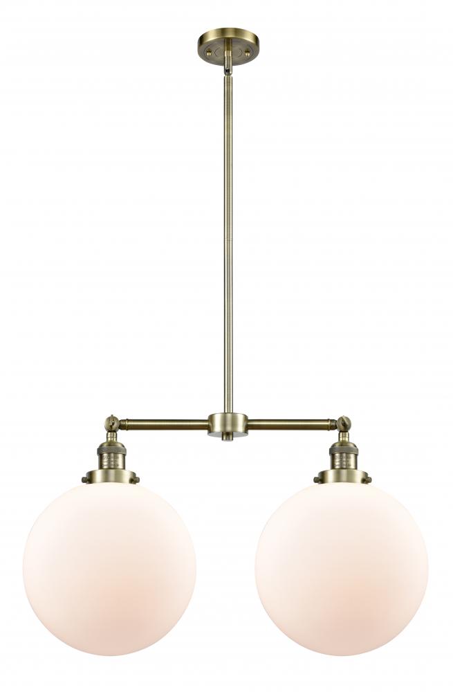 Beacon - 2 Light - 27 inch - Antique Brass - Matte White Shade - Stem Hung - Adjustable Island Light