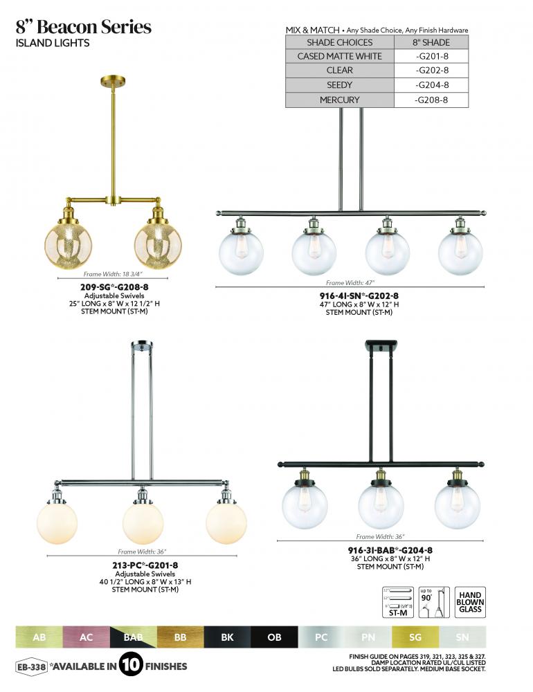 Innovations Lighting 214-SG-G201-8 - Beacon - 4 Light - 53 inch - Satin Gold - Stem Hung - Adjustable Island Light