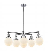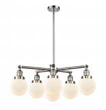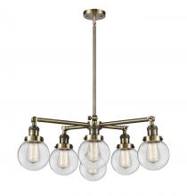 Beacon - 6 Light 30" Chandelier - Incandescent Bulb - Antique Brass Finish - Matte White Shade