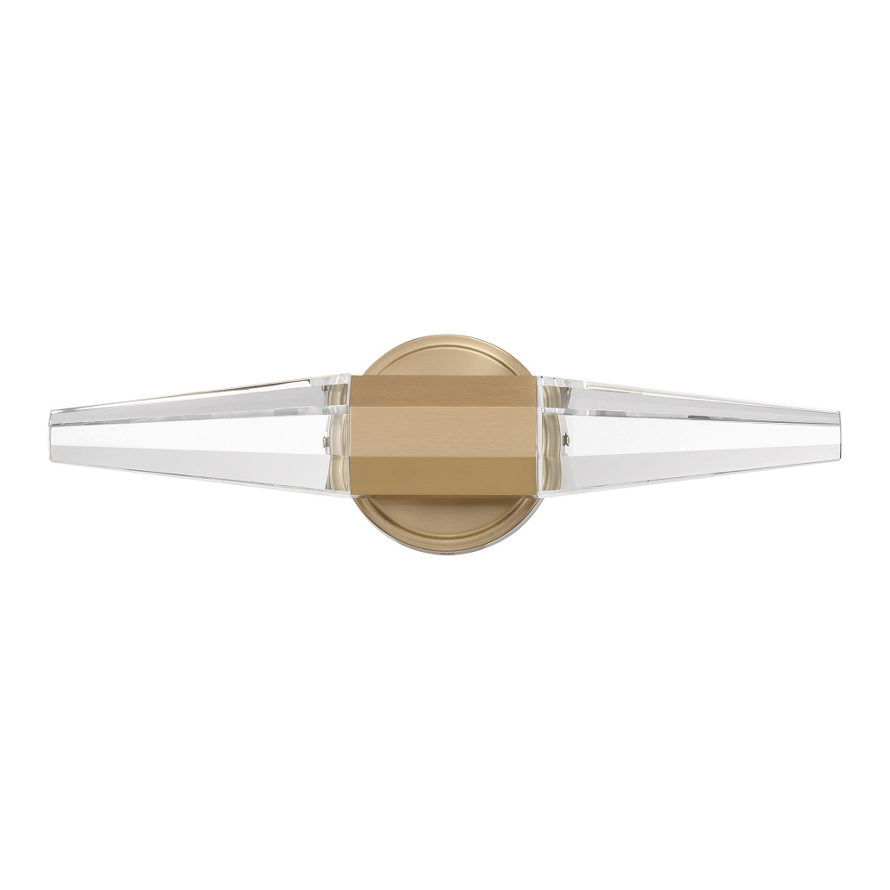 Get right to the point of style with the Savoy House Beaumont LED wall sconce. Two pieces of faceted, pointed K9 crystal burst forth from an understated base, which is finished in super chic Noble Brass. This edgy style is a perfect way to illuminate a bath vanity, piece of art, hallway, living room, bedside table or any other space you can imagine! Beaumont is 5.25" in height, 18" in width and extends 4.25" from the wall. It uses integrated LED light sources.