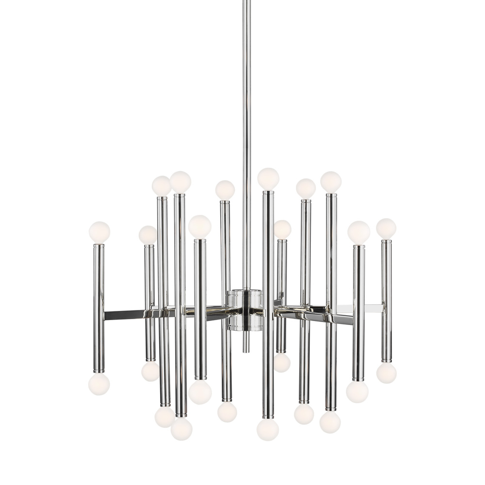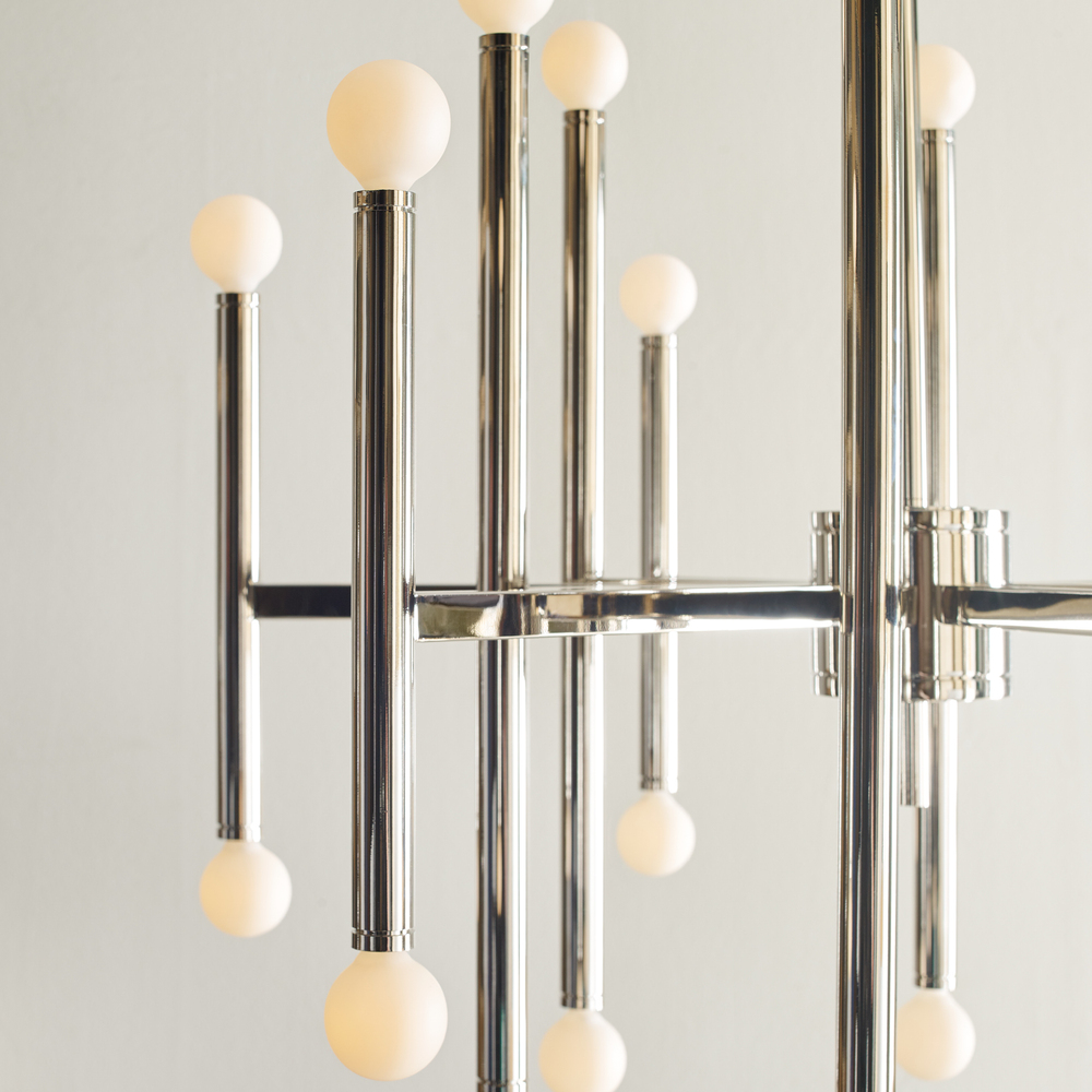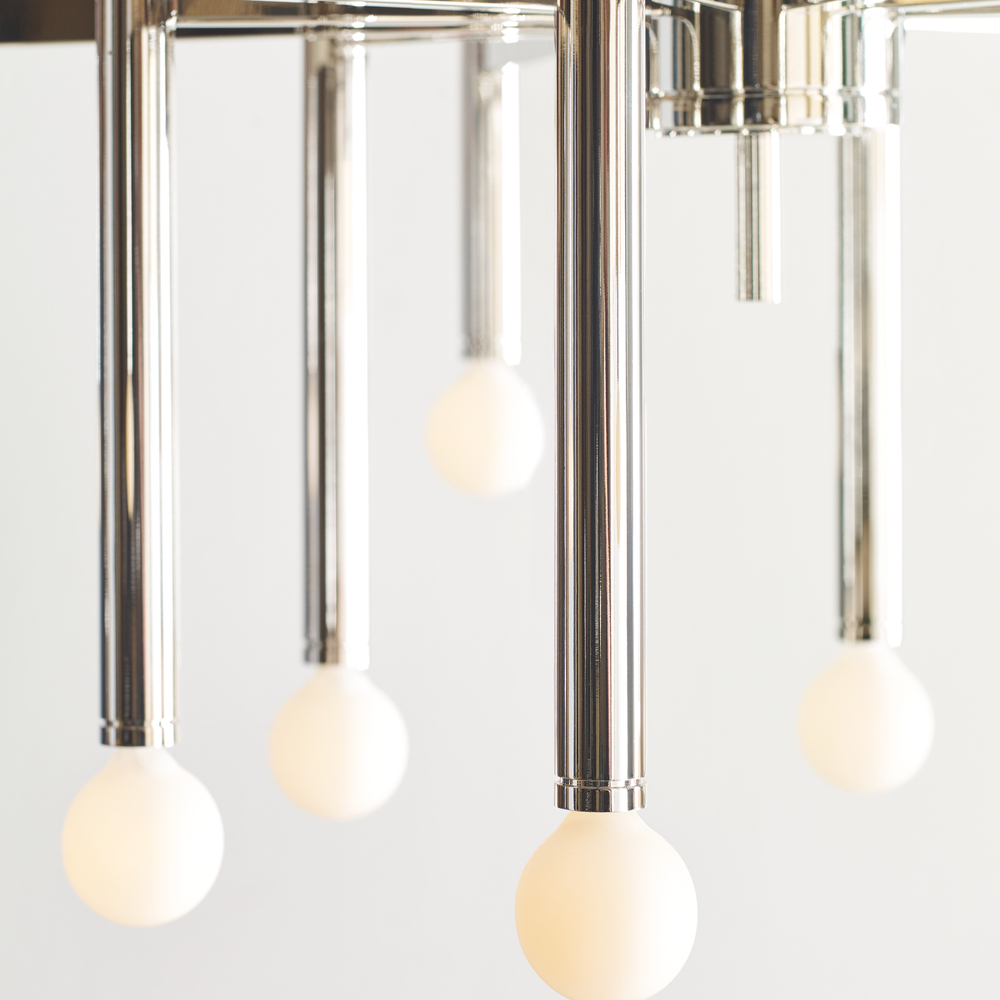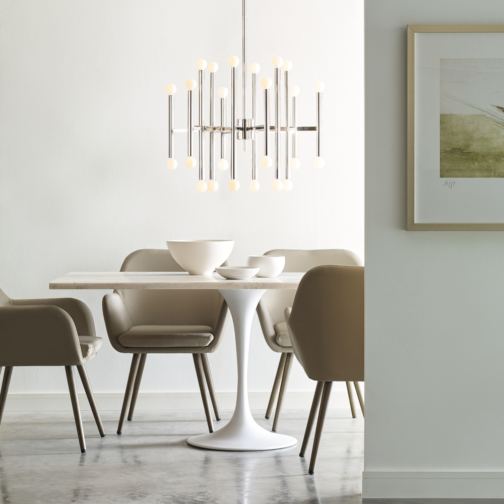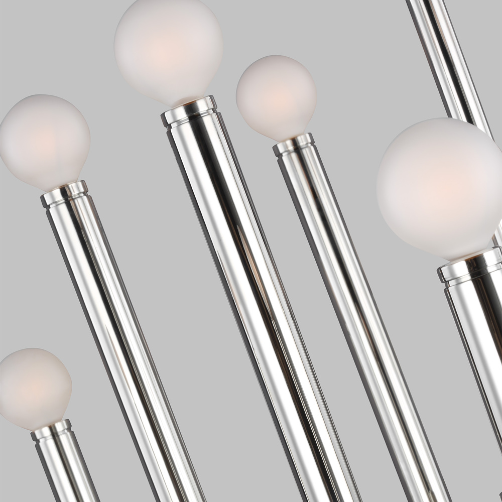 As the name suggests, Beckham Modern from TOB by Thomas O'Brien for Visual Comfort Studio Collection pairs vertical lines and globes with sophisticated, modern glamour. Crafted of steel with Burnished Brass or Polished Nickel finish, these chandeliers and one, two or six -light wall sconces emanate soft, opulent light, lending a sculptural glow wherever they are placed.