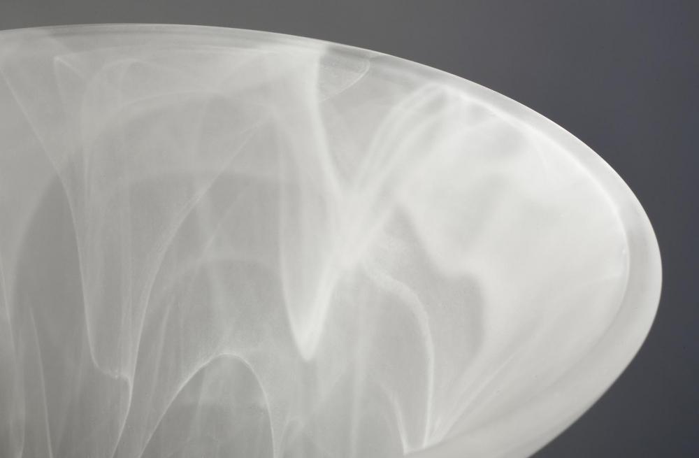 Brushed Nickel finish.;Alabaster glass.;Presents softly diffused light.;Finely crafted frame with striking metallic features.