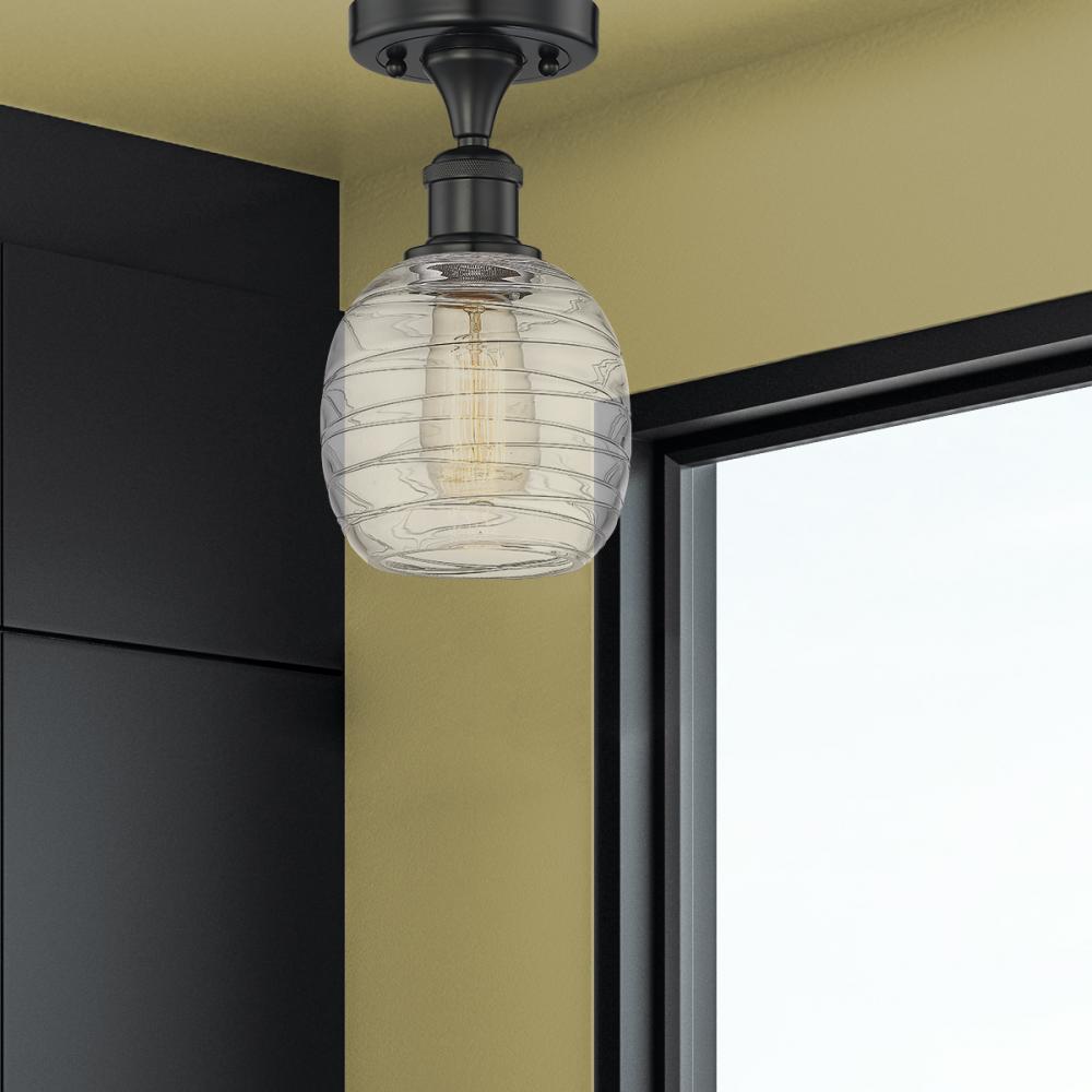 Belfast - 1 Light - 6 inch - Matte Black - Deco Swirl Shade - Semi-Flush Mount