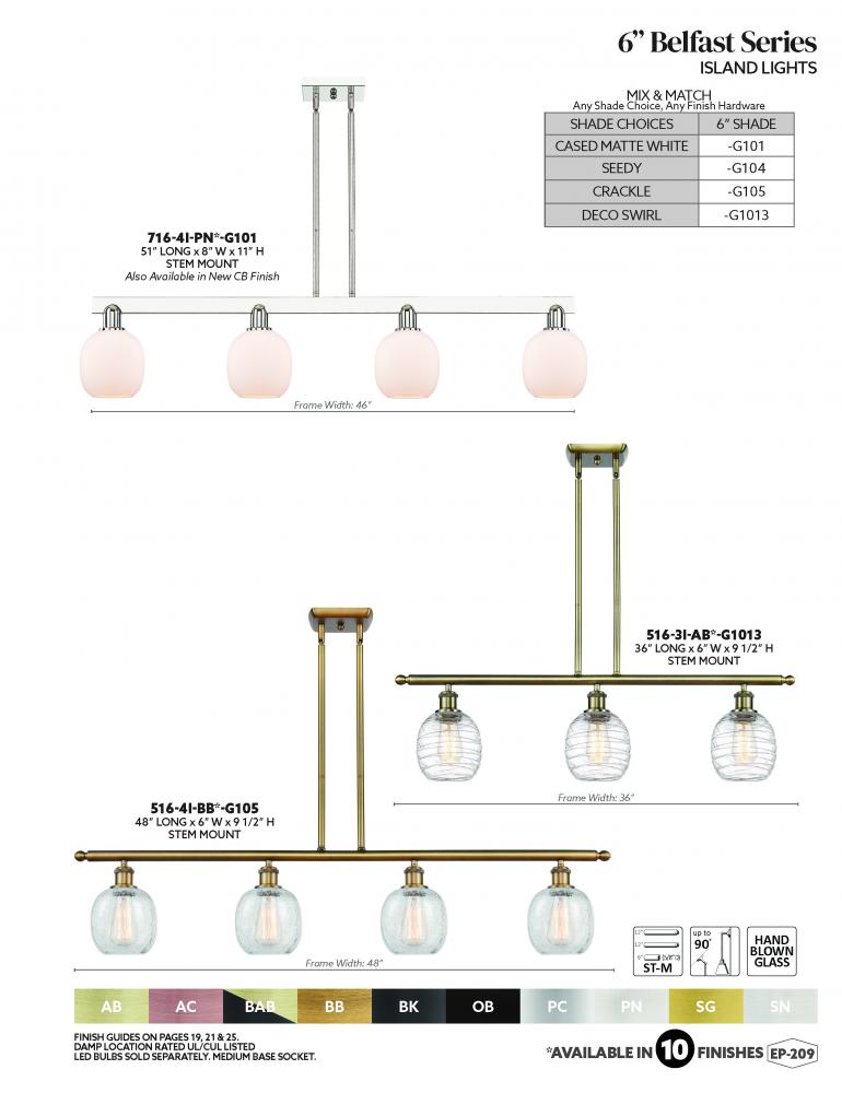 Innovations Lighting 516-4I-AB-G1013 - Belfast - 4 Light - 48 inch - Antique Brass - Stem hung - Island Light