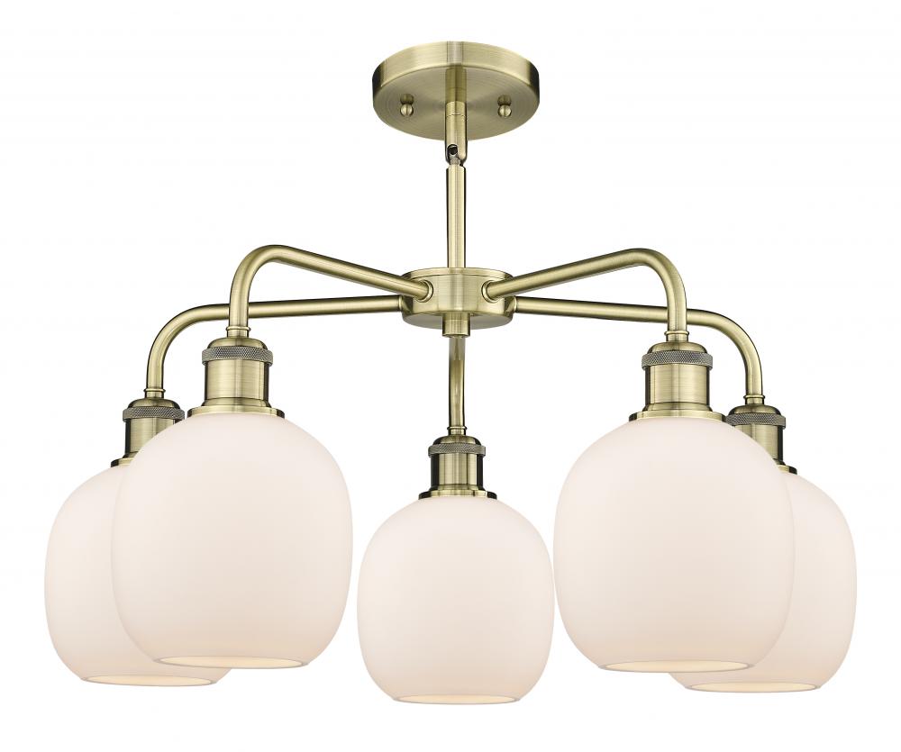 Belfast - 5 Light - 24 inch - Antique Brass - Matte White Shade - Chandelier