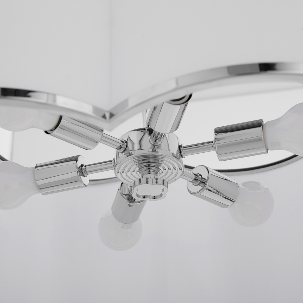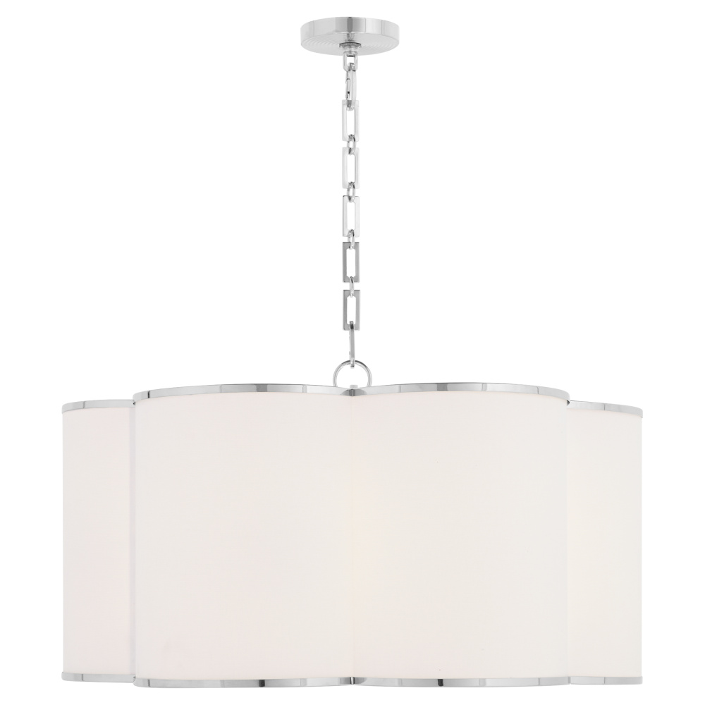 The Belinder series expertly captures the essence of Tamara Day's signature "laid-back luxe" style. Featuring delicate ribbing, white linen fabric shades, and a floral-inspired design, the Belinder collection adds a modern touch of luxury to any interior space. A decorative finial with Tamara's trademark clover design provides an extra layer of care and detail alongside a rectangle link chain. This collection's two pendant designs come in chrome, matte black, or non-lacquered brass finishes. Include the Belinder 4 or 6 light fabric pendant in your next home design.