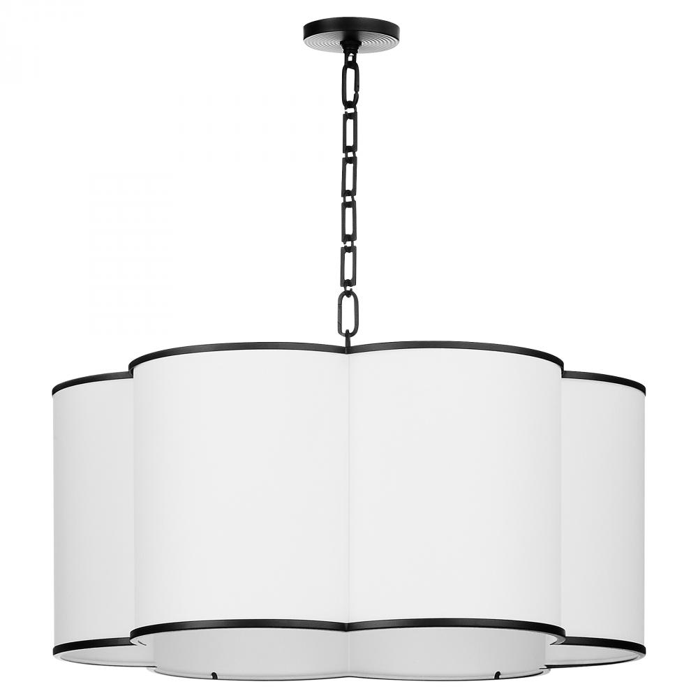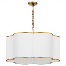 The Belinder series expertly captures the essence of Tamara Day's signature "laid-back luxe" style. Featuring delicate ribbing, white linen fabric shades, and a floral-inspired design, the Belinder collection adds a modern touch of luxury to any interior space. A decorative finial with Tamara's trademark clover design provides an extra layer of care and detail alongside a rectangle link chain. The two pendant designs of this collection come in options of matte black or non-lacquered brass finishes. Include the Belinder 4 or 6 light fabric pendant in your next home design.
