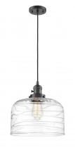 Bell - 1 Light - 12 inch - Antique Brass - Clear Deco Swirl Shade - Cord hung - Mini Pendant