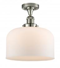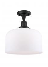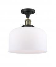 Bell - 1 Light - 12 inch - Antique Brass - Matte White Shade - Semi-Flush Mount