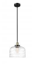 Bell - 1 Light - 12 inch - Antique Brass - Clear Deco Swirl Shade - Stem hung - Mini Pendant