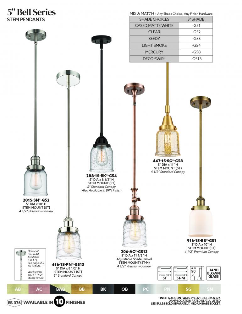 The Edison collection is comprised of heavy cast components that give the fixture a sturdy transitional look. We offer the fixture in 9 finishes with a Bare Bulb look or with over 100 possible metal and glass shade options that can change the style to fit