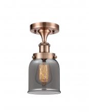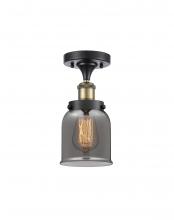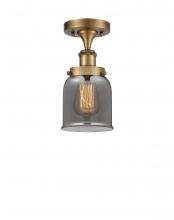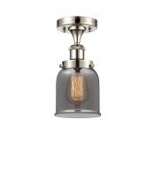 Bell - 1 Light - 5 inch - Brushed Satin Nickel - Light Smoke Shade - Semi-Flush Mount