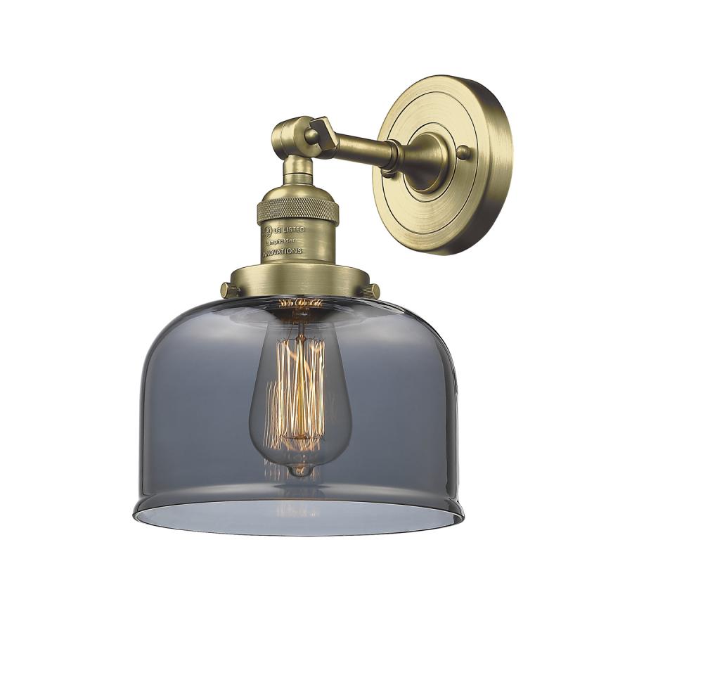 Bell - 1 Light - 8 inch - Antique Brass - Light Smoke Shade - Adjustable Sconce