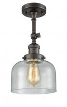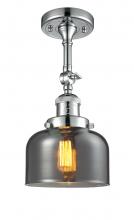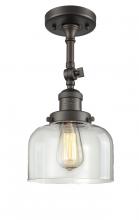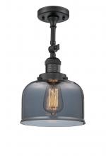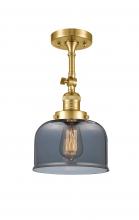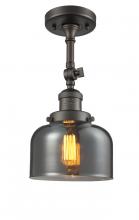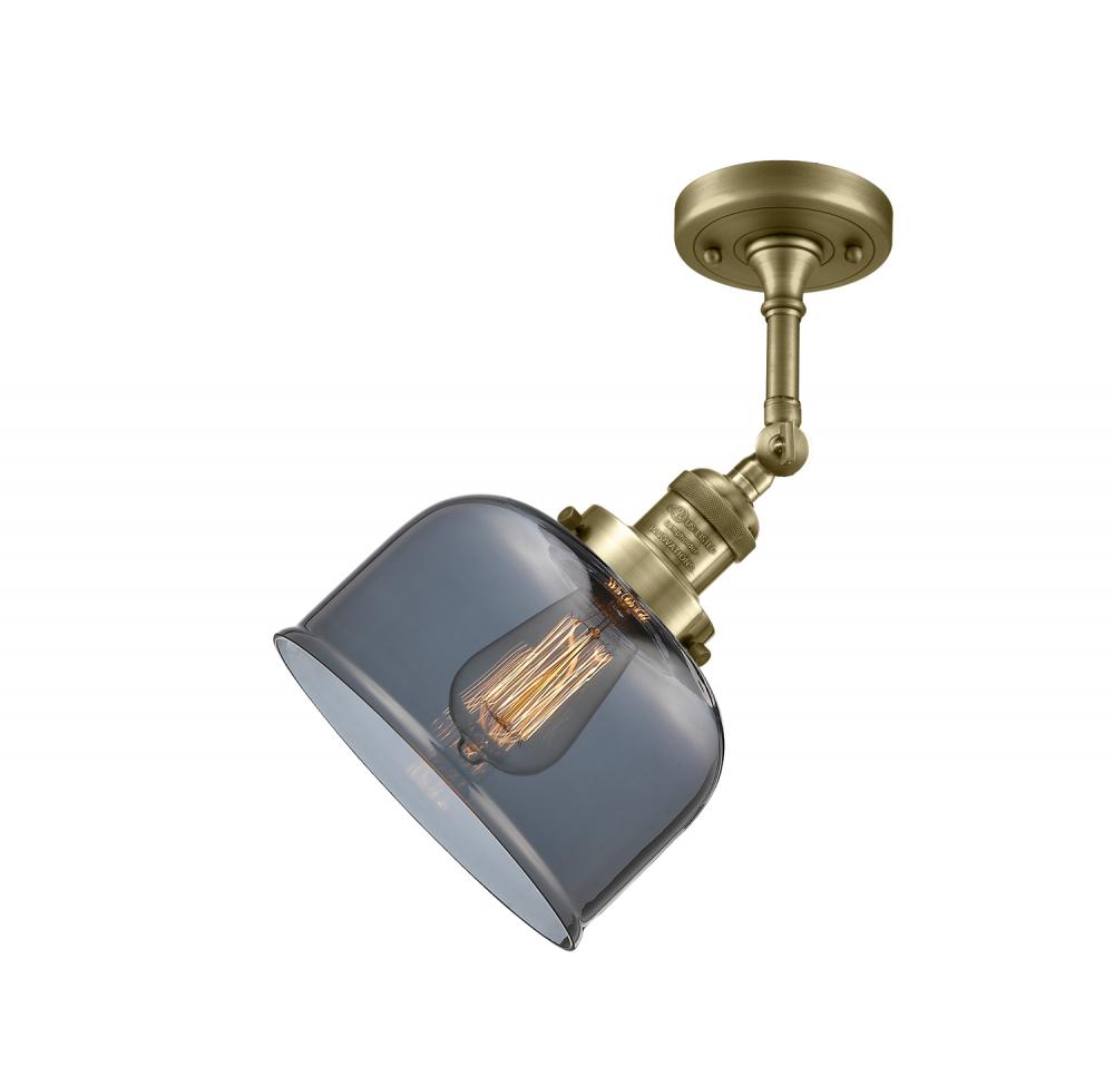 Bell - 1 Light - 8 inch - Antique Brass - Light Smoke Shade - Adjustable Semi-Flush Mount