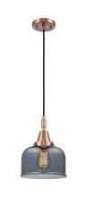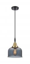 Bell - 1 Light - 8 inch - Antique Brass - Light Smoke Shade - Mini Pendant