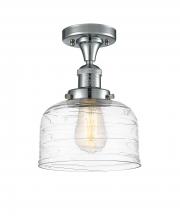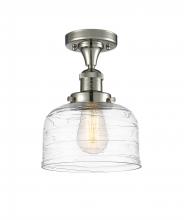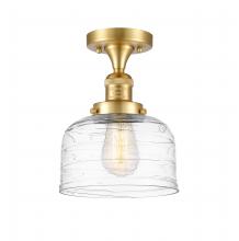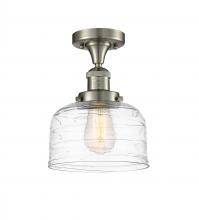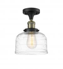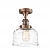 Bell - 1 Light - 8 inch - Antique Brass - Clear Deco Swirl Shade - Semi-Flush Mount