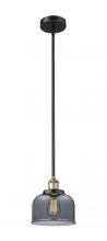Bell - 1 Light - 8 inch - Antique Brass - Light Smoke Shade - Stem hung - Mini Pendant