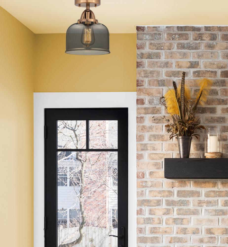 Bell - 1 Light - 8 inch - Antique Copper - Light Smoke Shade - Semi-Flush Mount