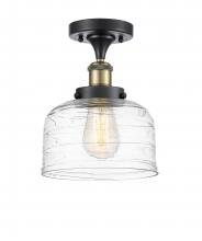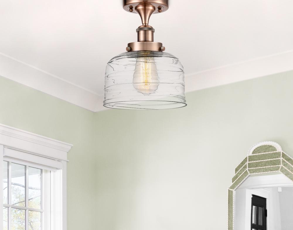 Bell - 1 Light - 8 inch - Antique Copper - Clear Deco Swirl Shade - Semi-Flush Mount
