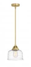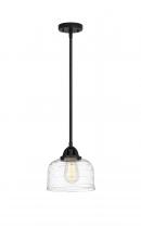 Bell - 1 Light - 8 inch - Antique Copper - Clear Deco Swirl Shade - Stem hung - Mini Pendant