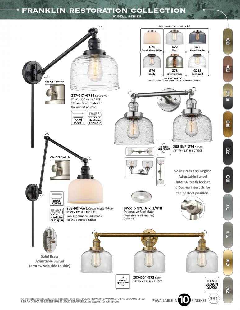 The Franklin Restoration collection is comprised of heavy cast components that give the fixture a heavy Industrial look and feel. We offer the fixture in 10 finishes with a Bare Bulb look or with over 100 possible metal and glass shade options that can cha