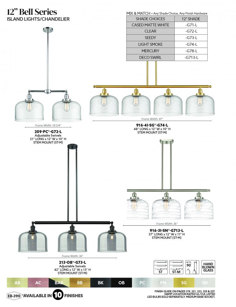 Innovations Lighting 214-BB-G71 - Bell - 4 Light - 53 inch - Brushed Brass - Stem Hung - Adjustable Island Light