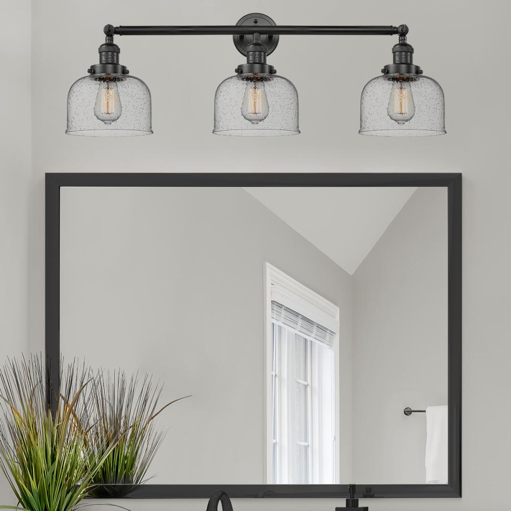 Bell - 3 Light - 32 inch - Matte Black - Seedy Shade - Bath Vanity Light