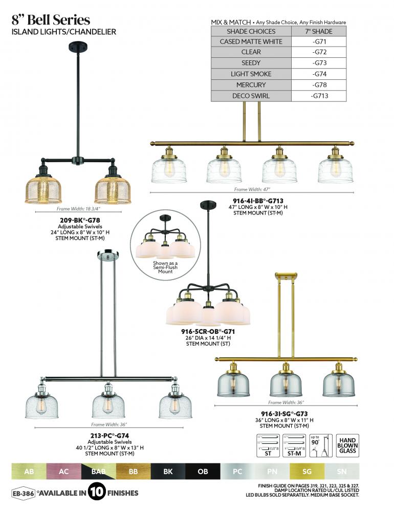 Innovations Lighting 214-BB-G71 - Bell - 4 Light - 53 inch - Brushed Brass - Stem Hung - Adjustable Island Light