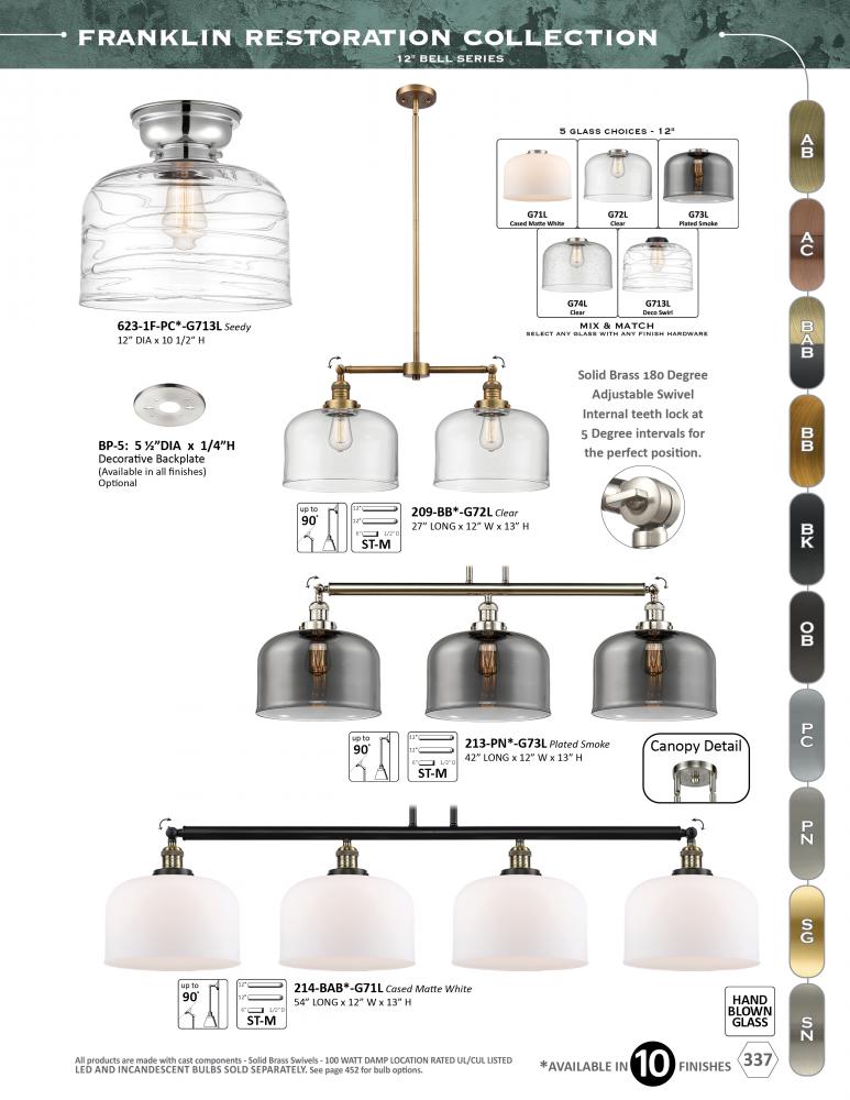 The Franklin Restoration collection is comprised of heavy cast components that give the fixture a heavy Industrial look and feel. We offer the fixture in 10 finishes with a Bare Bulb look or with over 100 possible metal and glass shade options that can cha
