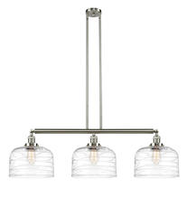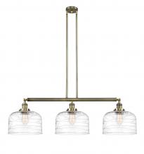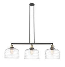 Bell - 3 Light - 42 inch - Antique Brass - Clear Deco Swirl Shade - Stem Hung - Adjustable Island Light