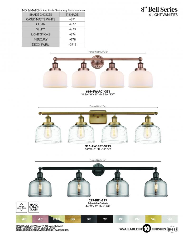 Innovations Lighting 214-BB-G71 - Bell - 4 Light - 53 inch - Brushed Brass - Stem Hung - Adjustable Island Light