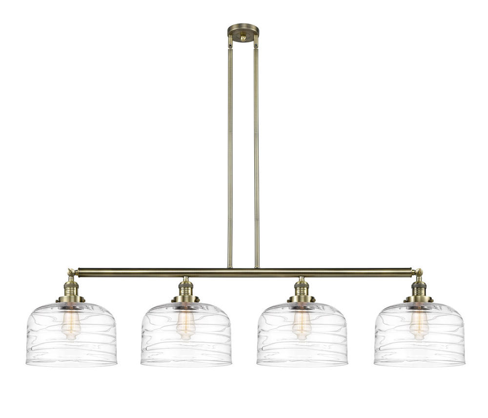 Bell - 4 Light - 54 inch - Antique Brass - Clear Deco Swirl Shade - Stem Hung - Adjustable Island Light