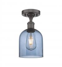 Bella - 1 Light - 6 inch - Antique Brass - Blue Shade - Semi-Flush Mount