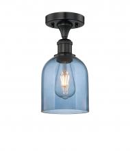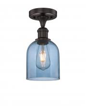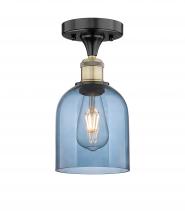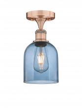 Bella - 1 Light - 6 inch - Antique Brass - Blue Shade - Semi-Flush Mount