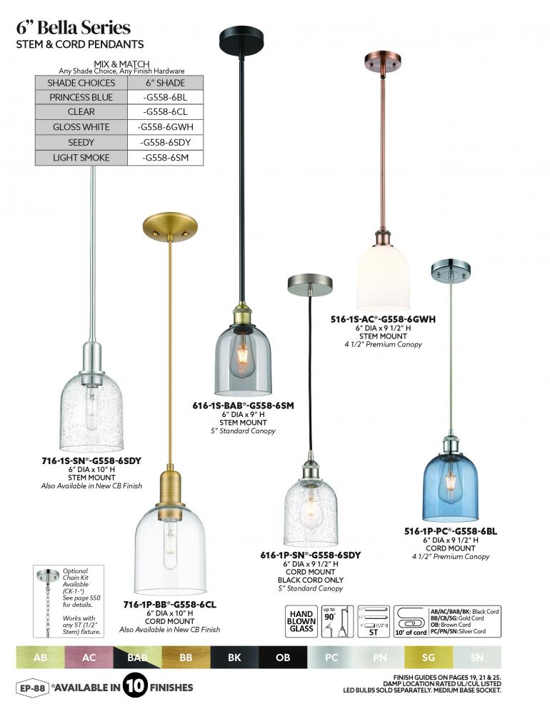Innovations Lighting 516-1S-AB-G558-6BL - Bella - 1 Light - 6 inch - Antique Brass - Mini Pendant