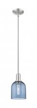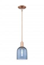 Bella - 1 Light - 6 inch - Antique Brass - Blue shade - Stem hung - Mini Pendant