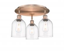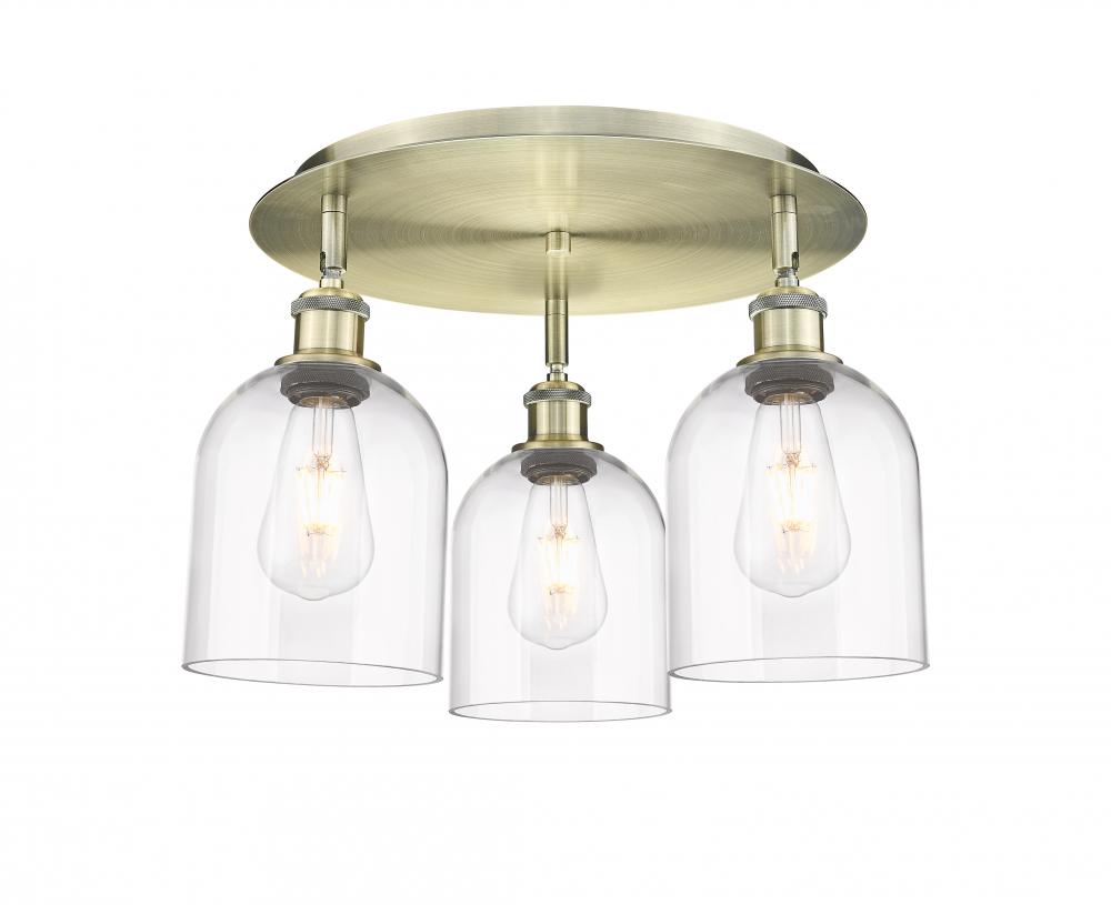 Bella - 3 Light - 17 inch - Antique Brass - Clear Shade - Semi-Flush Mount