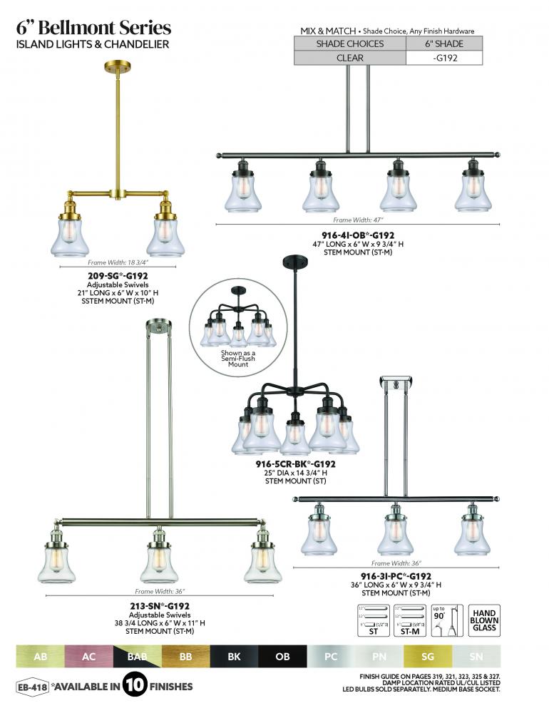 Innovations Lighting 214-BB-G192 - Bellmont - 4 Light - 51 inch - Brushed Brass - Stem Hung - Adjustable Island Light