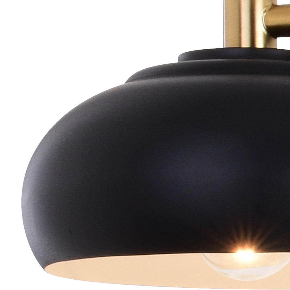 Understated elegance describes the contemporary Belmont collection. A repetition of dome shaped metal shades hang in perfect symmetry along a satin brass metal support. The white interior of the matte black shade casts a soft glow for the ideal look. This vanity wall light brings a mid century modern flair to any bath, bedroom or living space.