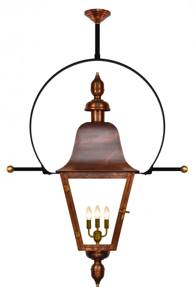 Size 40 Electric Copper Lantern, 3 candelabra base sockets, with Classic Yoke, Ladder Rest
