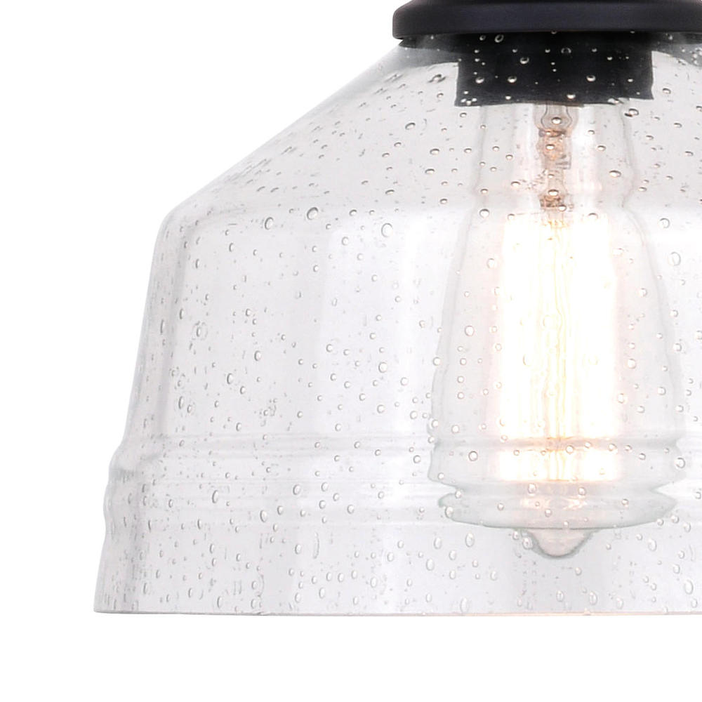 The Beloit mini-pendant adds a welcoming and inviting feel to your kitchen or living spaces. Soft curving lines finished in matte black, are paired with a large clear seeded glass shade, creating a look that accents the most comfortable spaces. Combine that with a vintage Edison style filament bulb to complete the look. Bring a level of sophistication to your trendy farmhouse or urban style with this mini pendant.