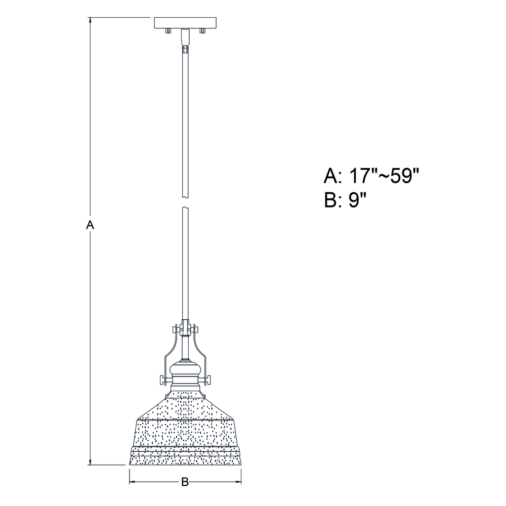 Adjustable height; 17-59 inches using 3 x 12 in., 1 x 6 in., 1 x 3 in. of included down rods; sloped ceiling compatible