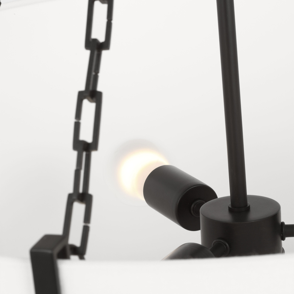 Crafted with Steel in a Aged Iron finish with white linen shade