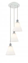 Berkshire - 3 Light - 15 inch - Antique Brass - Matte White Shade - Cord Hung - Multi Pendant